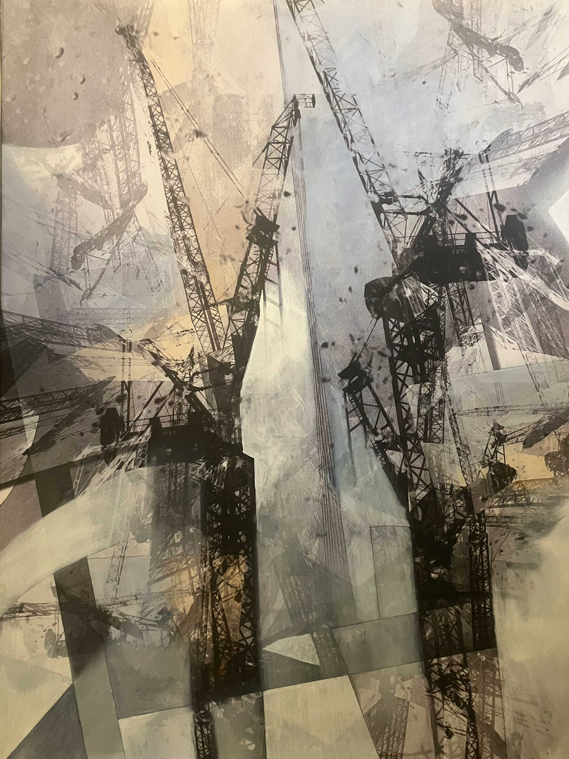 Les grues se multiplient et se dissolvent dans un paysage urbain visionnaire.