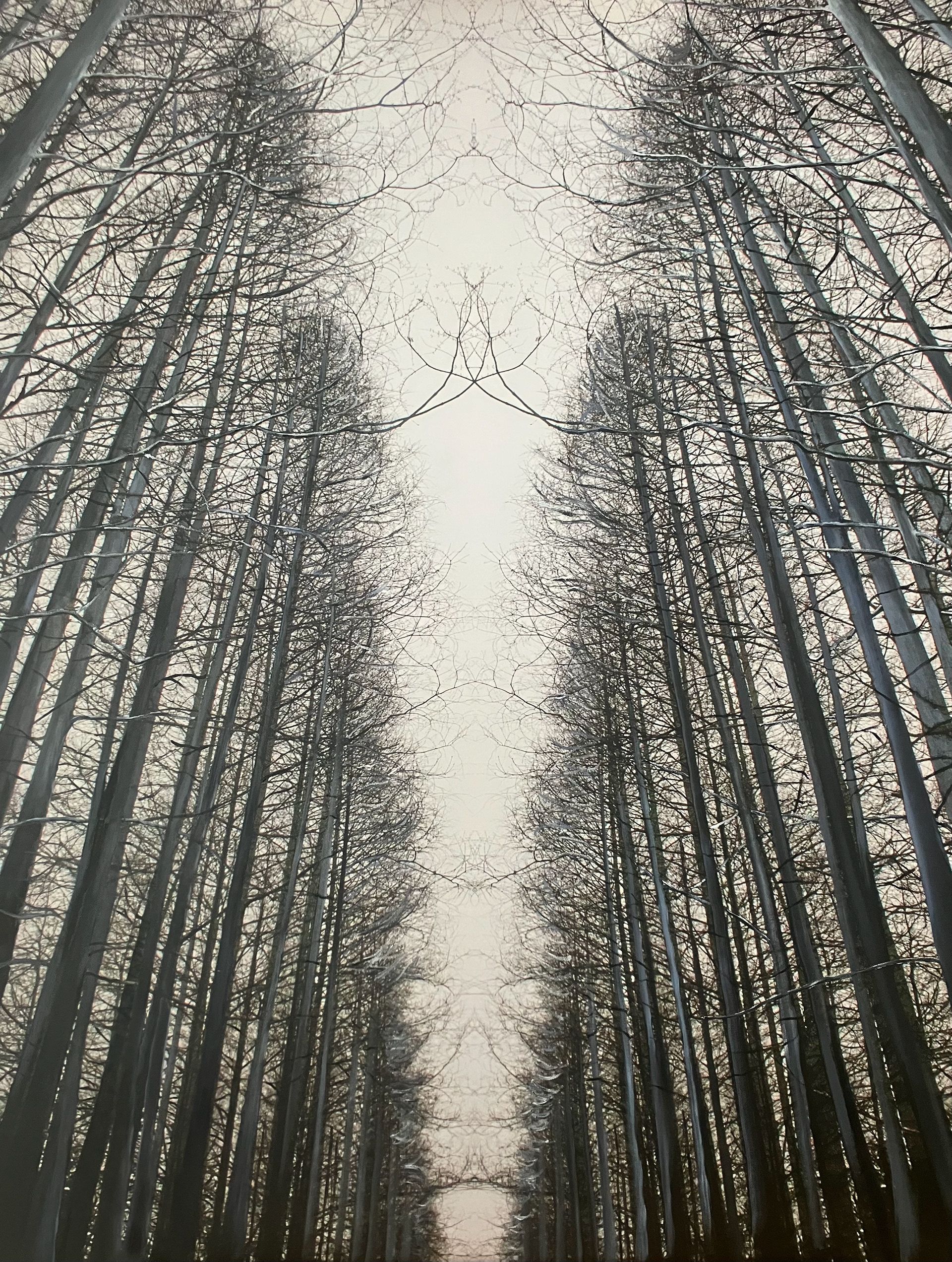 Stripped of their leaves, the trees expose their secret architecture — a transformation in progress.